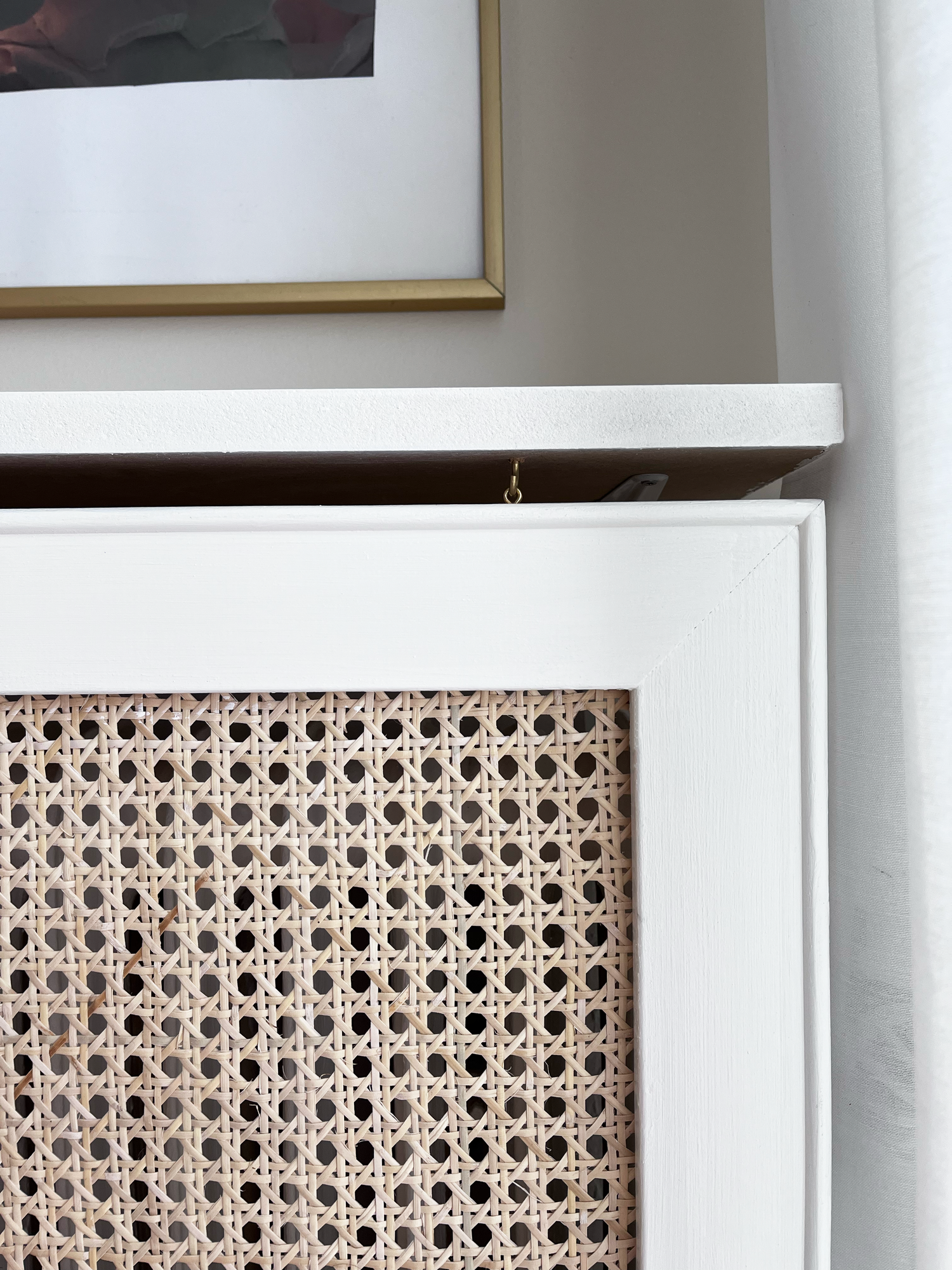 Dina elementskydd hängs upp med hjälp av medföljande öglor och krokar i mässing. Kroken fästs i undersidan av exempelvis din fönsterkarm eller hylla, och öglan skruvas fast i elementskyddet.