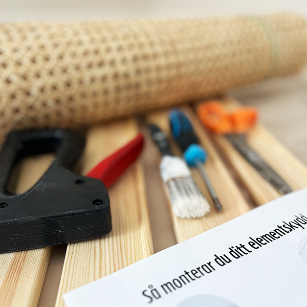 När du beställer från Galleri Deco får du ditt elementskydd levererat i delar. Inuti paketet finns allt du behöver – från rotting till skruvar – tillsammans med en enkel steg-för-steg-guide. Monteringen är snabb och kräver inga förkunskaper. Du behöver bara en häftpistol med stift, en pensel och en vanlig skruvmejsel.